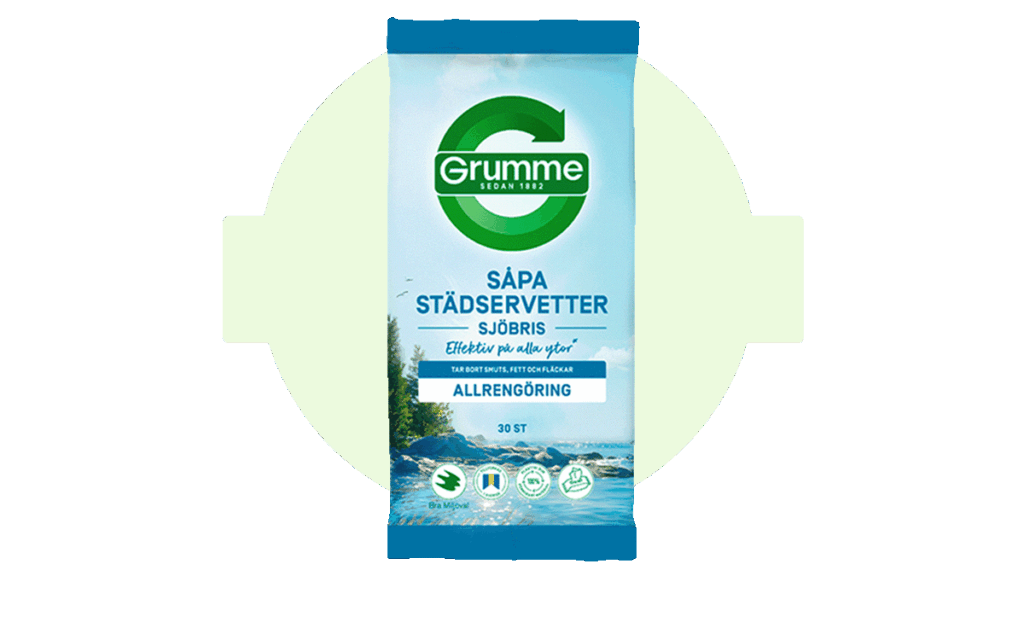 Grumme såpa är en städklassiker sedan 1882. Idag har vi ett stort sortiment inom städning och rengöring. Förutom såpa och andra rengöringsmedel hittar du även miljömärkta och komposterbara städservetter och städsprayer i vårt sortiment.